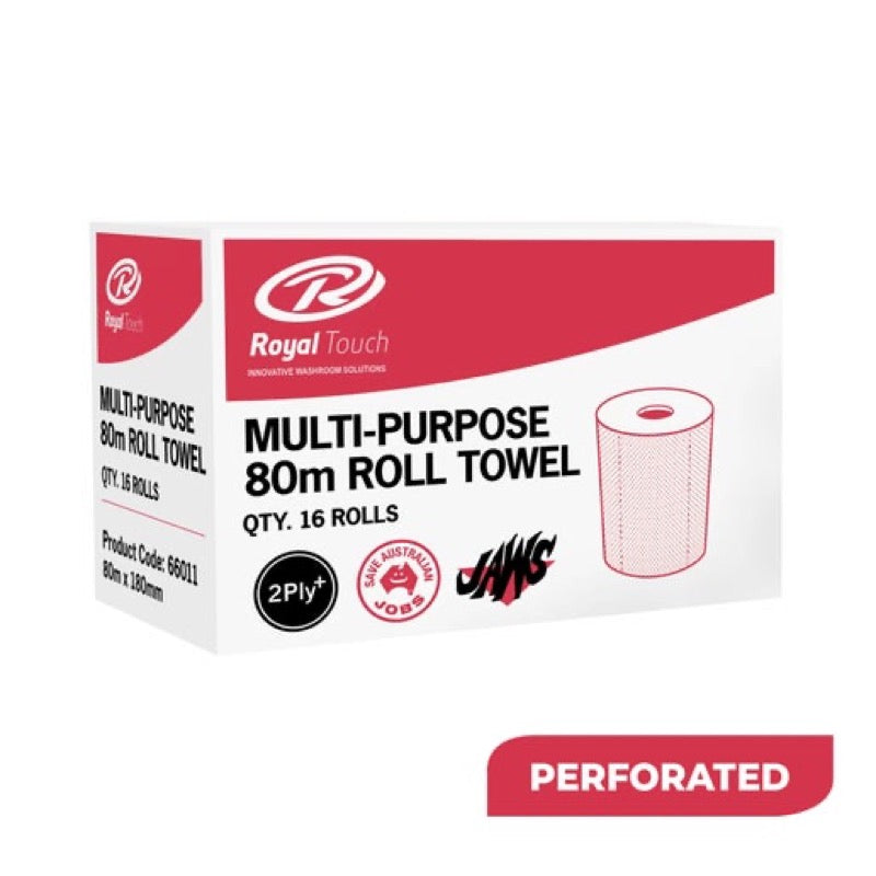 Royal Touch | Hand Towel 80m Roll Perforated 2ply Carton of 16 Rolls