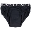 Waterproof and absorbent, 100% brushed cotton incontinence pad sewn-in to genuine BONDS® branded Hipster-style underwear.