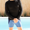 These adult Splash Jammers provide reliable faecal leak protection without looking like an incontinence protector. Made from 1mm thick neoprene, with a snug waist rib and hidden silicone seals around the legs, the Jammers securely contain solids without the need for additional incontinence pads or disposable swim nappies. Their sporty design allows them to be worn as swim shorts, but they are slim enough to fit under board shorts if preferred. Suitable for both pool swimming and surfing in the ocean, they offer dependable support for those with bowel incontinence.