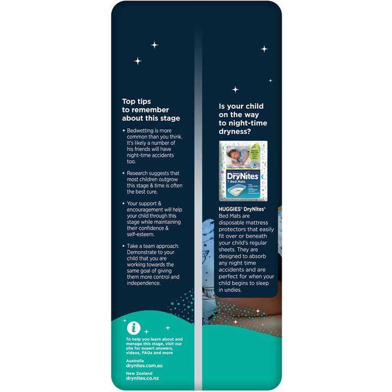 Huggies DryNites Night Time Pants are designed specifically for night-time bed-wetting, giving kids and parents peace of mind as little ones grow into confident, dry nights. These pants are tailored for boys aged 8 to 15 years, providing discreet protection that looks and feels like real underwear.