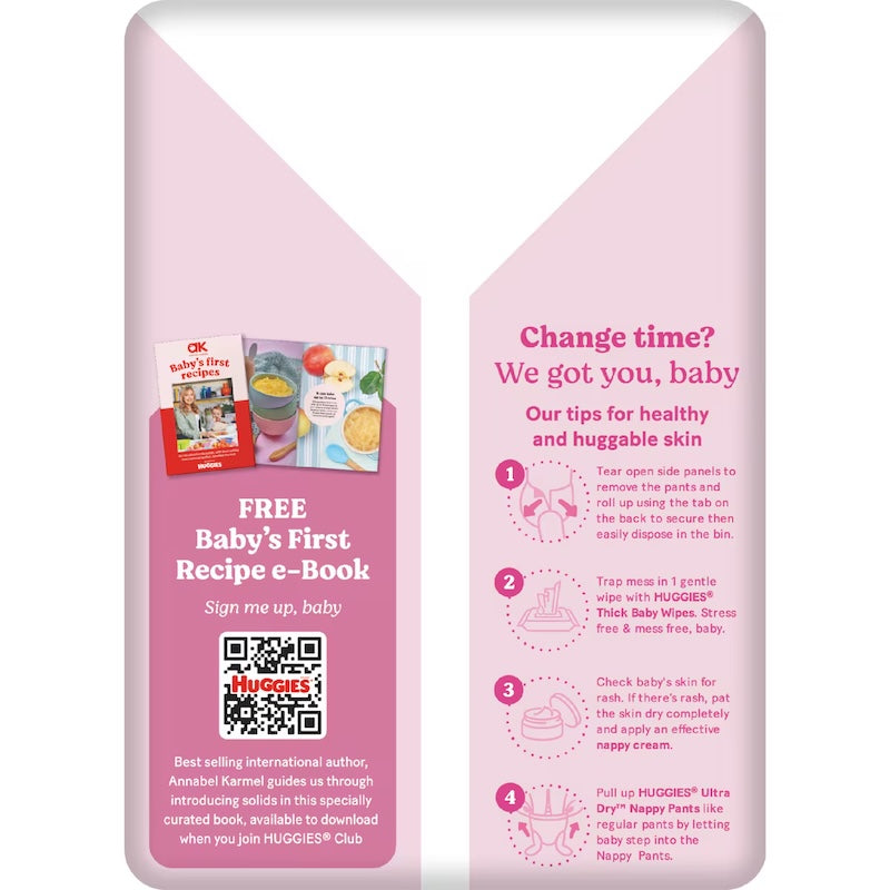 Huggies Ultra Dry Nappy Pants deliver reliable, comfortable protection for babies on the move. With Rapid Dry technology and a soft 360° waistband, they help keep bub snug and dry between changes.