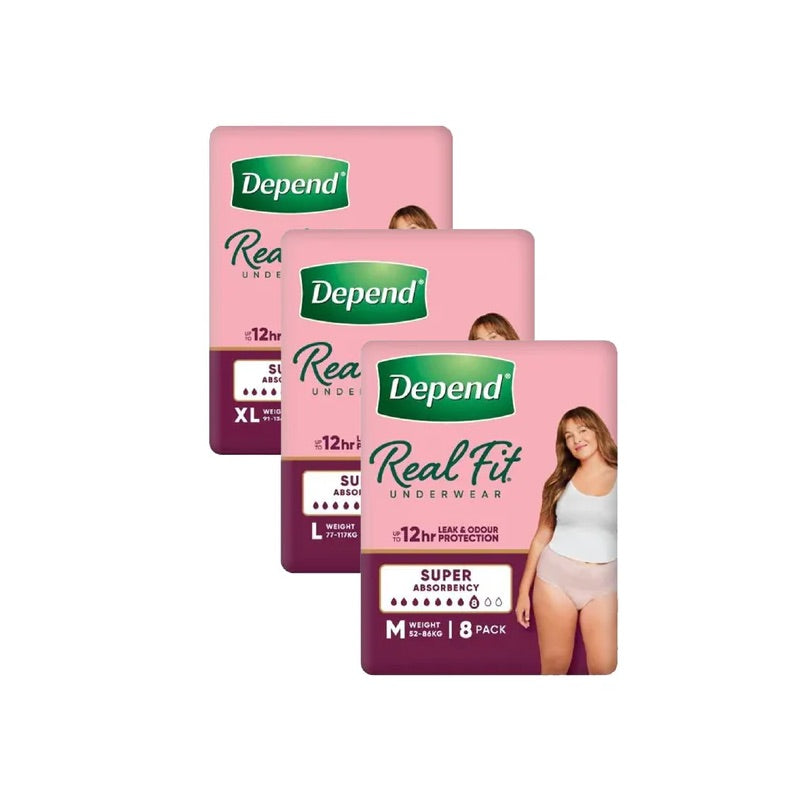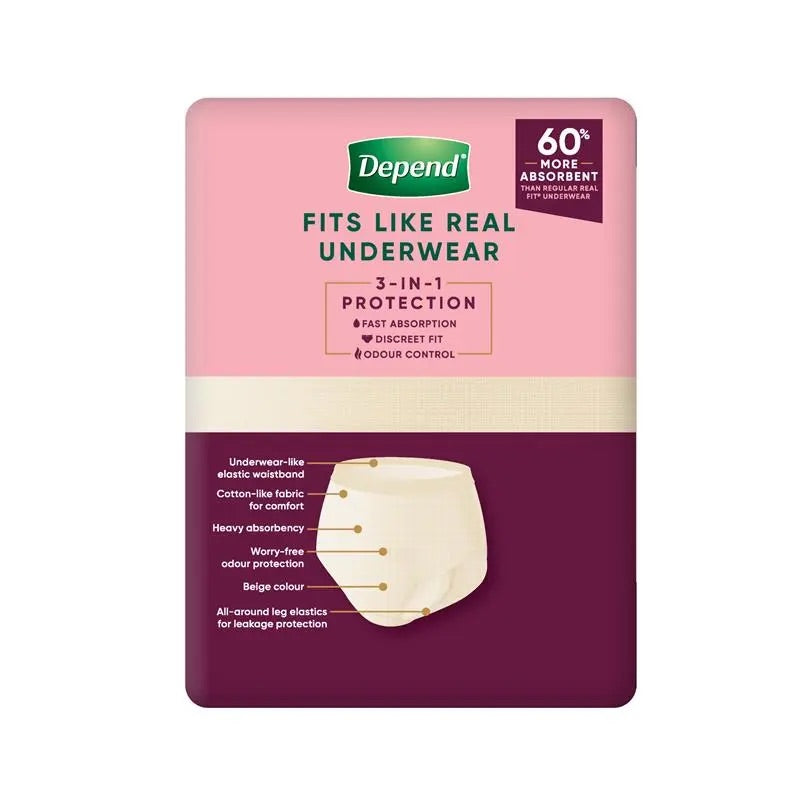 Depend Real-Fit Super Underwear for Women is designed to look and feel like real underwear while protecting against heavy bladder leaks. From a trusted brand, it offers discreet, reliable protection so you can go about your day with confidence.