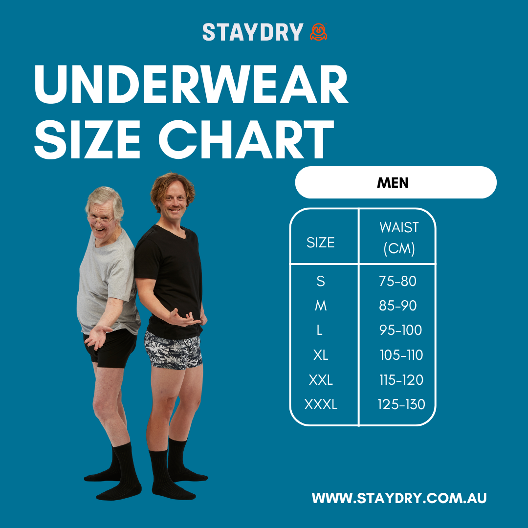 StayDry's Men's Reusable Trunk delivers discreet, reliable protection with a soft bamboo fibre interior and a waterproof, highly absorbent core designed for everyday wear and incontinence support. From Stay Dry Products, a trusted name in discreet incontinence solutions.