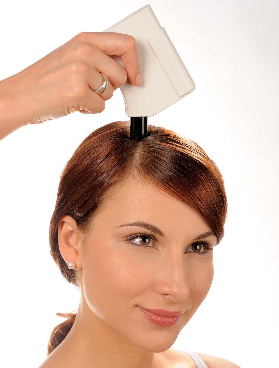 Precise, repeatable head design: The measuring head exposes a 64 mm2 section of tape; the tape advances to a fresh section via a side trigger, and used tape is rewound inside the cartridge for hygiene and consistency.