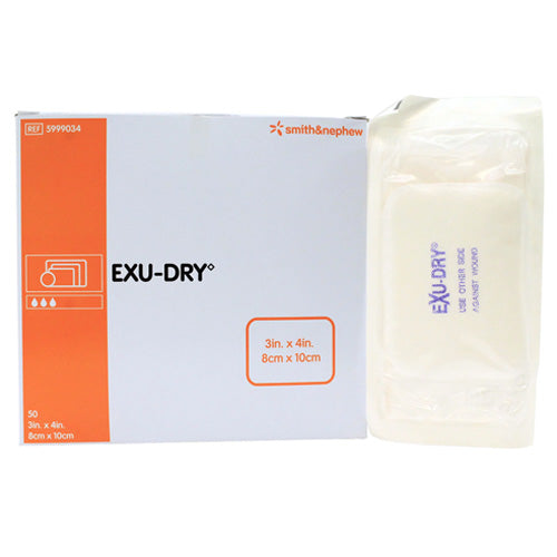 Exu-Dry is a one-piece, highly absorbent, non-adherent wound dressing designed to simplify care while delivering reliable absorption. It can be used as a wet or dry dressing on clean or contaminated wounds and is compatible with most topical agents, liquids and creams.
