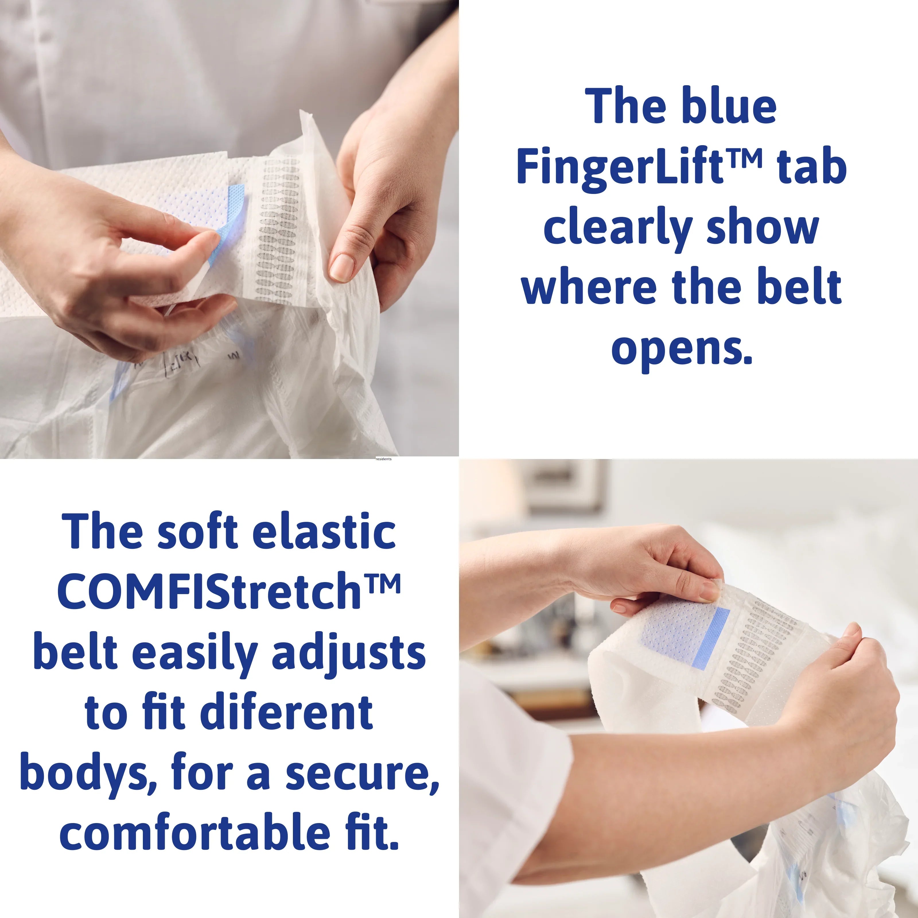 Belting with COMFIStretch - An adjustable elastic belt adapts to different body shapes, securing a comfortable fit and superior leakage security.
