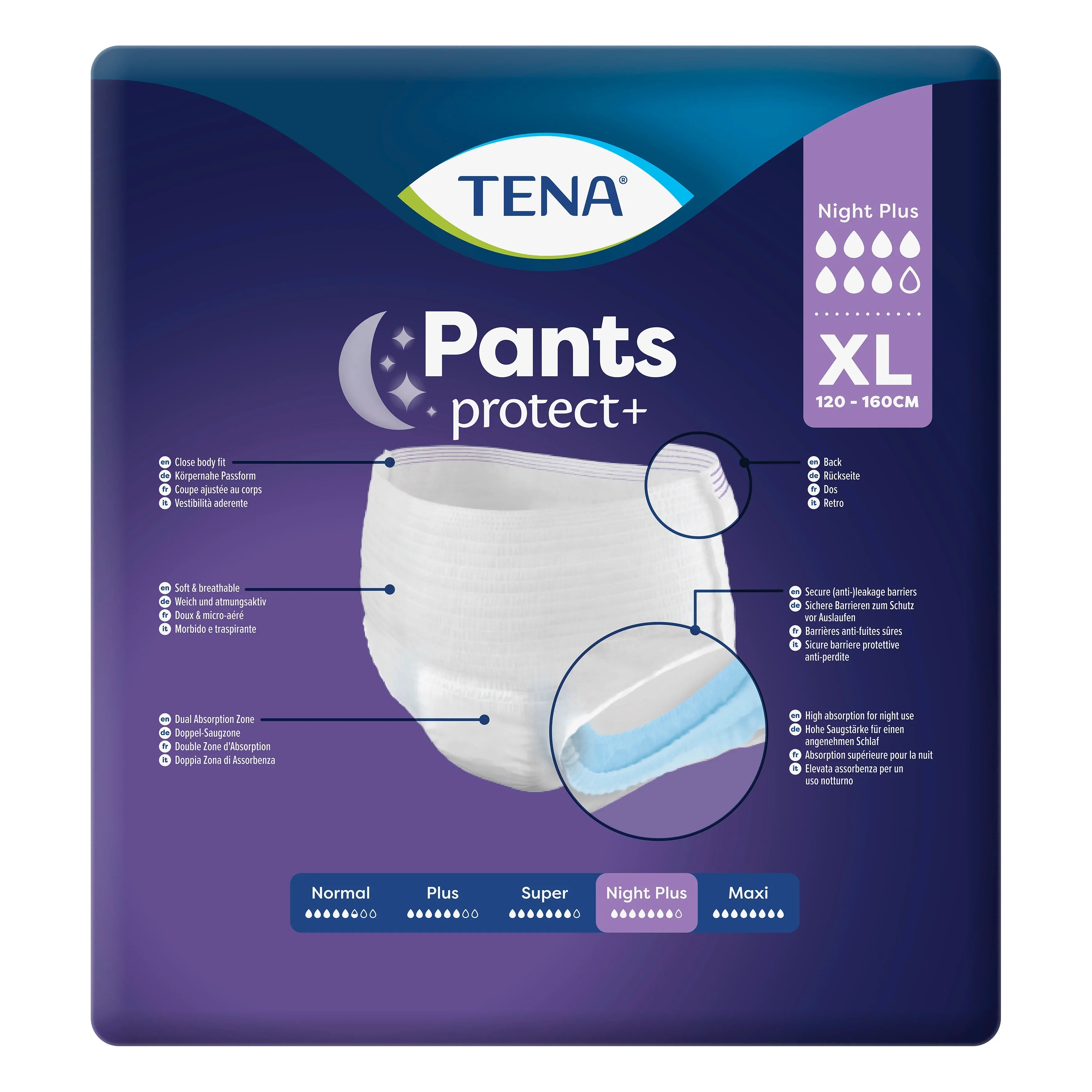 Designed for heavy overnight bladder leaks, TENA Pants Plus Night provides unisex, disposable pull-up protection that fits close to the body for a secure, comfortable night’s sleep. From the trusted TENA brand, these pants combine soft, breathable material with advanced absorption to help you wake feeling fresh and dry.