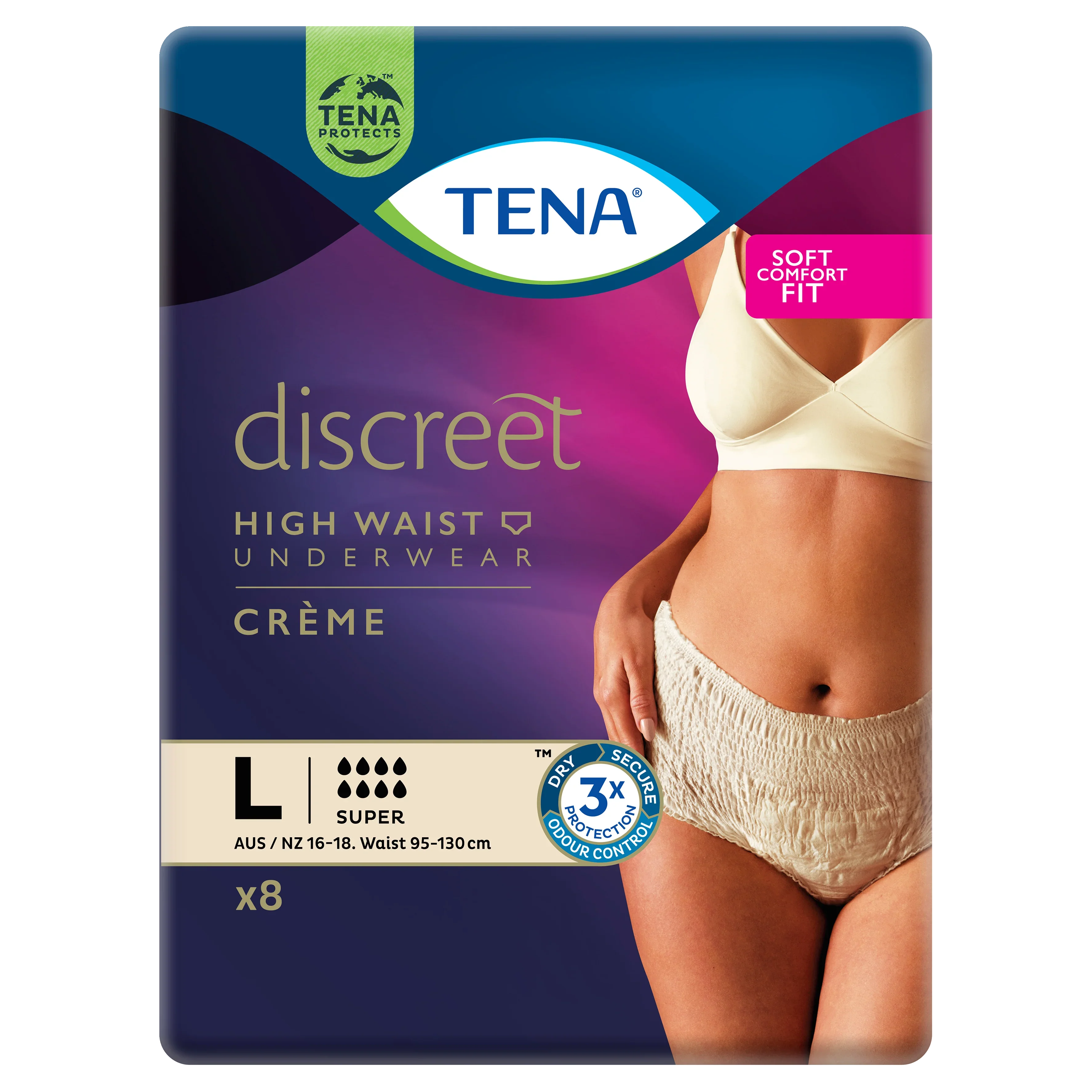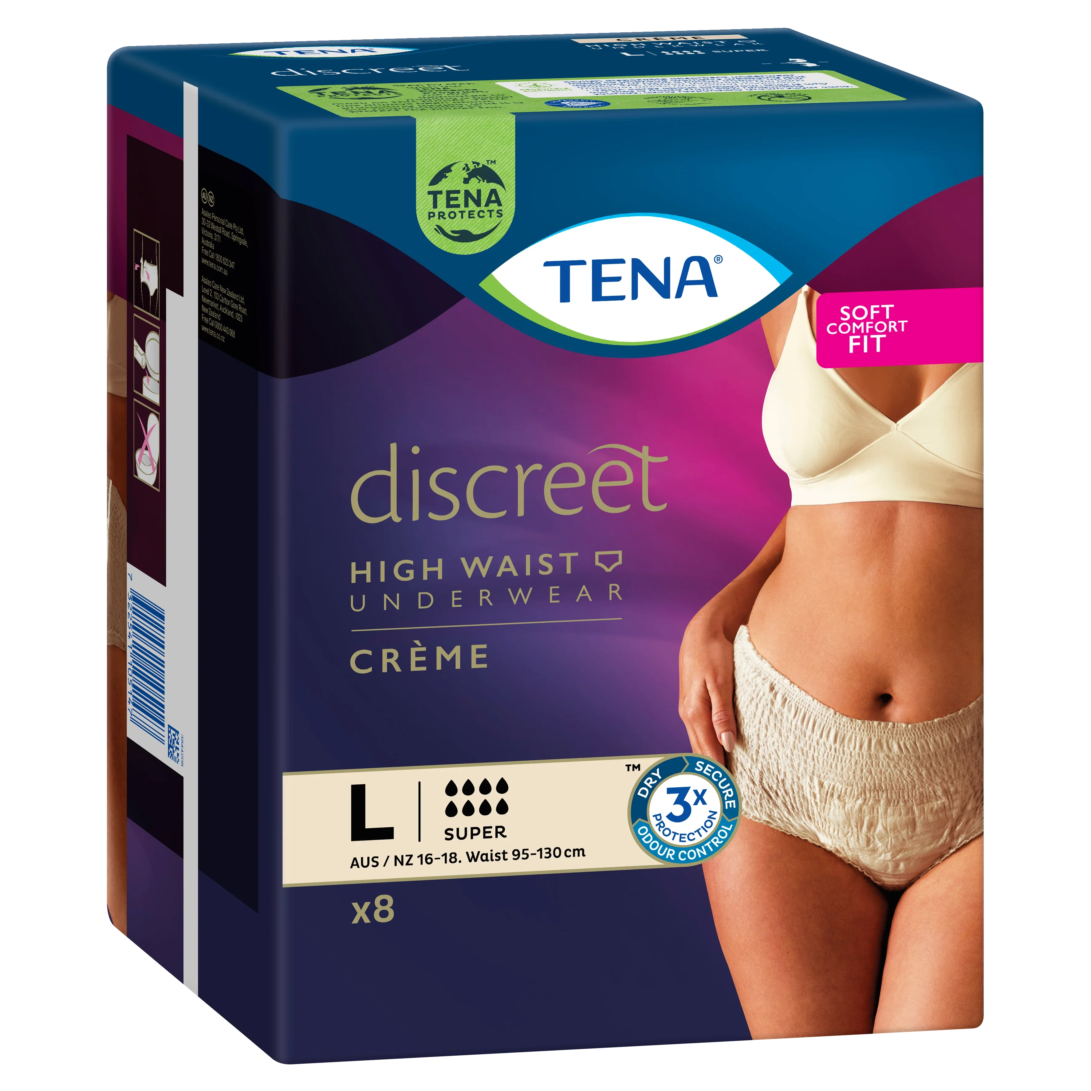 TENA Discreet High Waist Incontinence Disposable Underwear - Crème