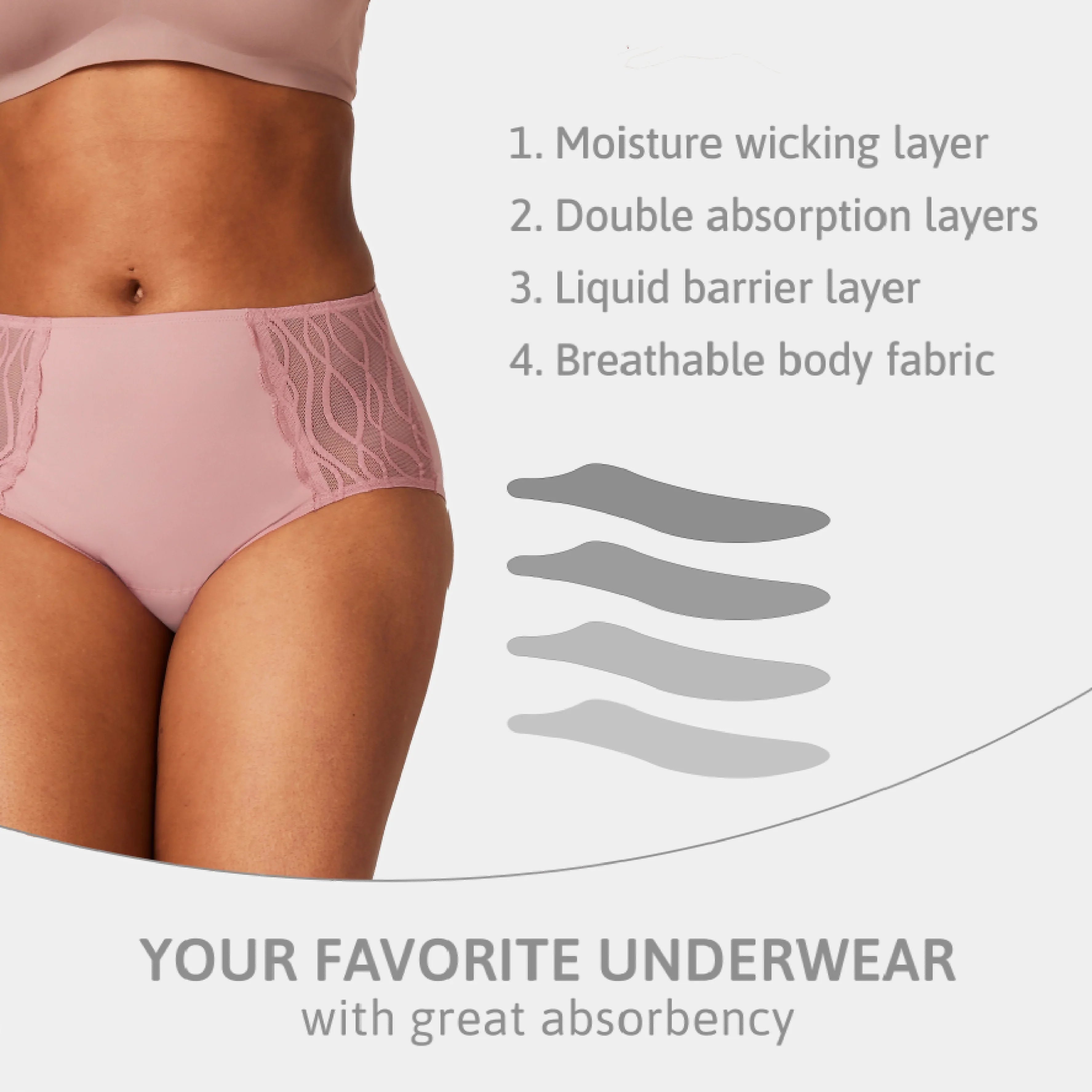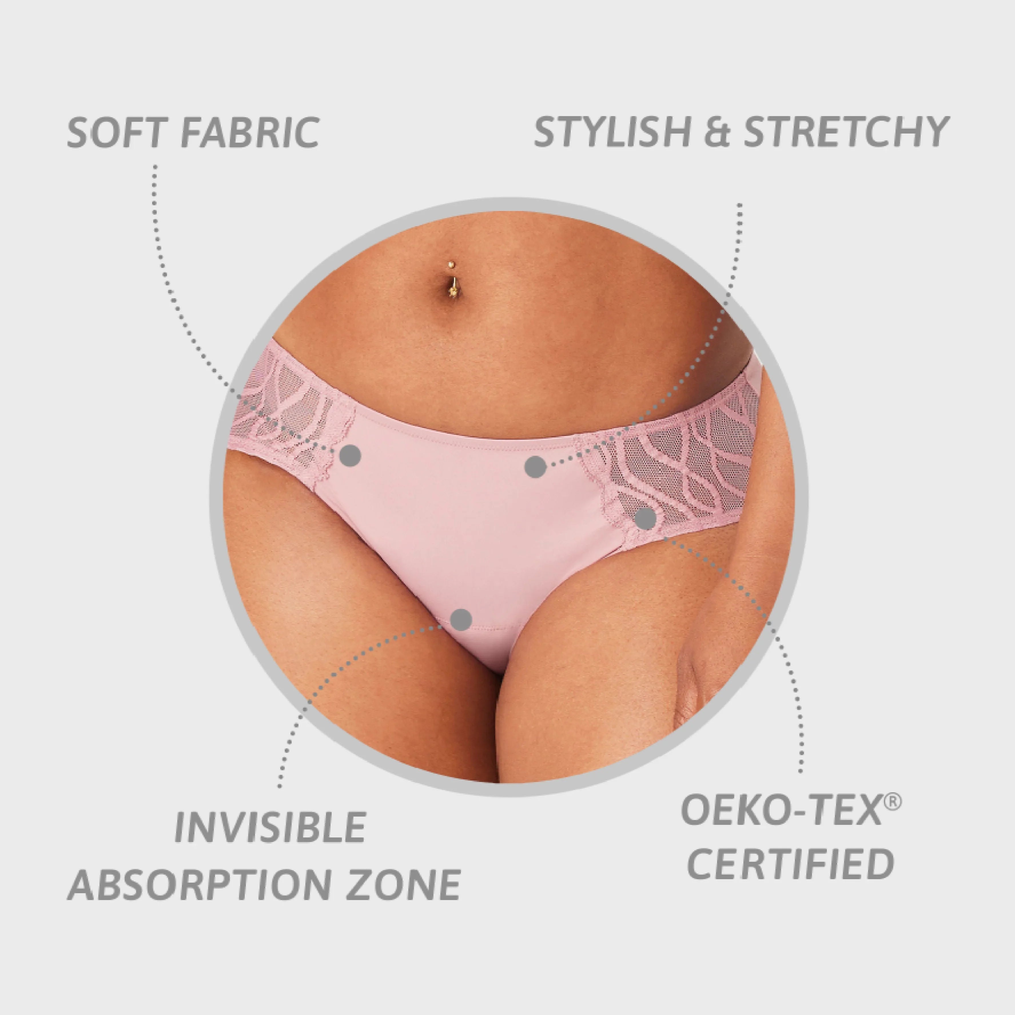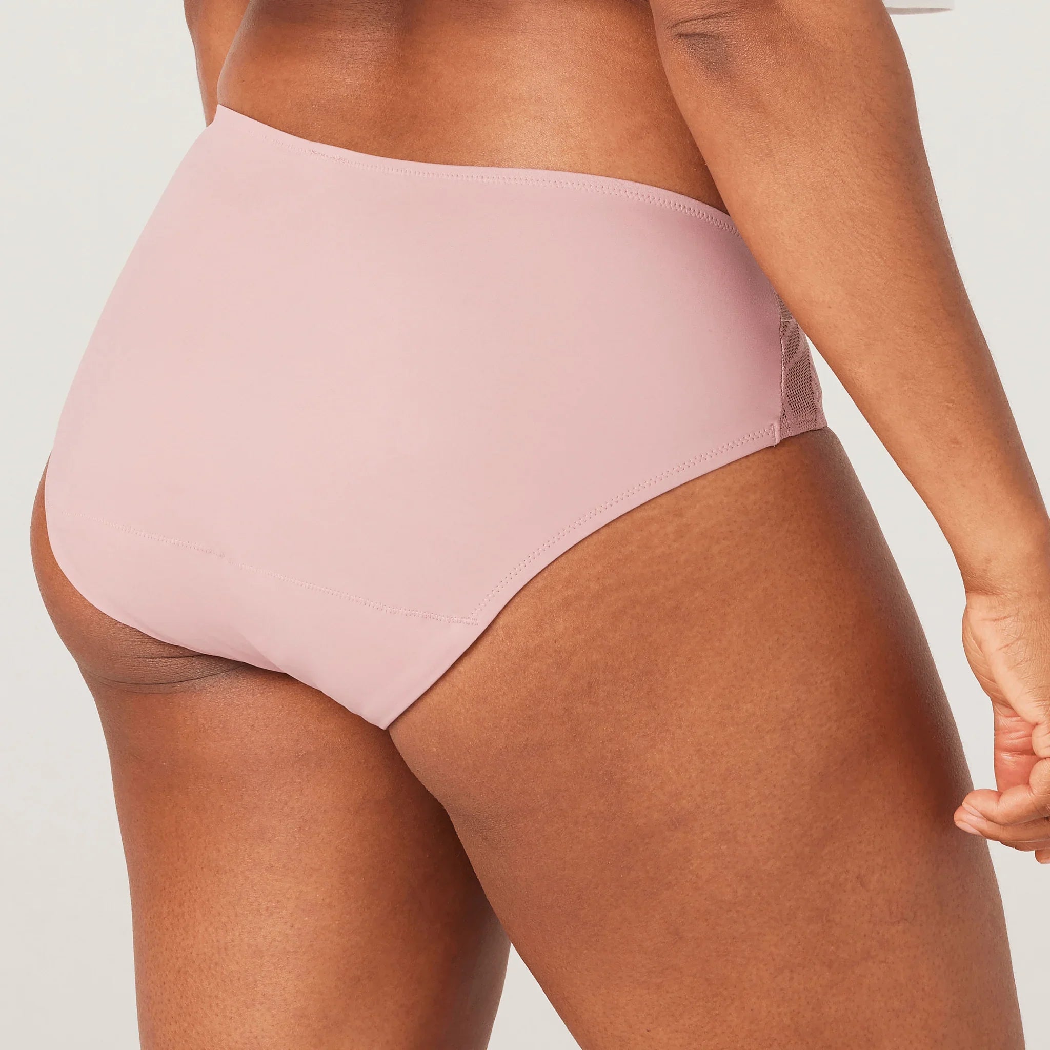 Elegant pink hipster underwear that provides discreet protection from light bladder leakage. It blends everyday style with reliable, reusable protection for confident, all-day wear.