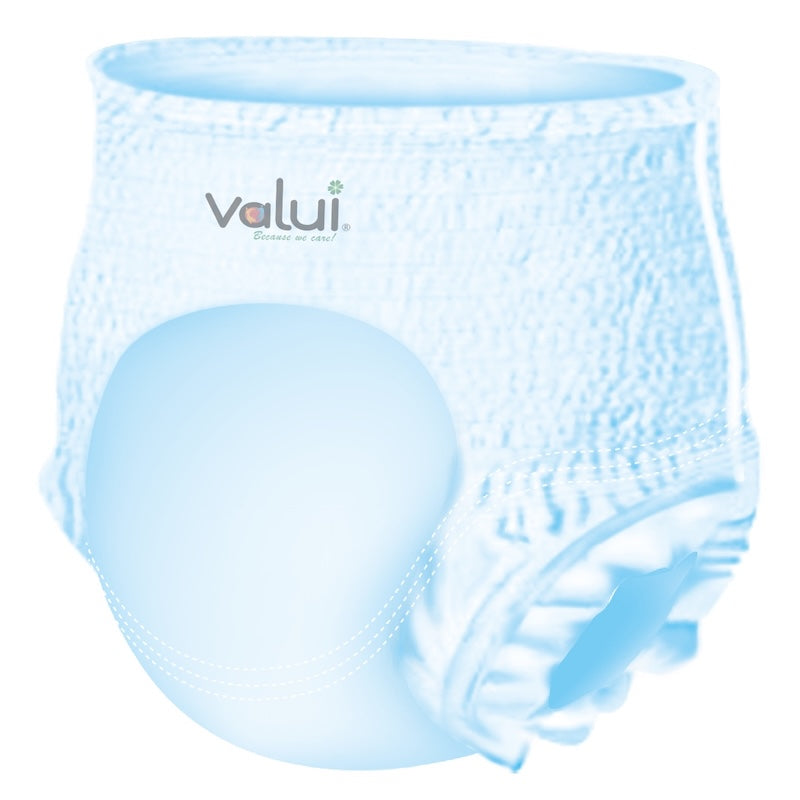 Valui Plus Pants are pull-up style incontinence aids designed to be worn just like normal underwear, offering discreet protection with a focus on comfort and reliability for everyday use. Trusted by caregivers and individuals alike, Valui delivers dependable protection in a breathable, comfortable design.